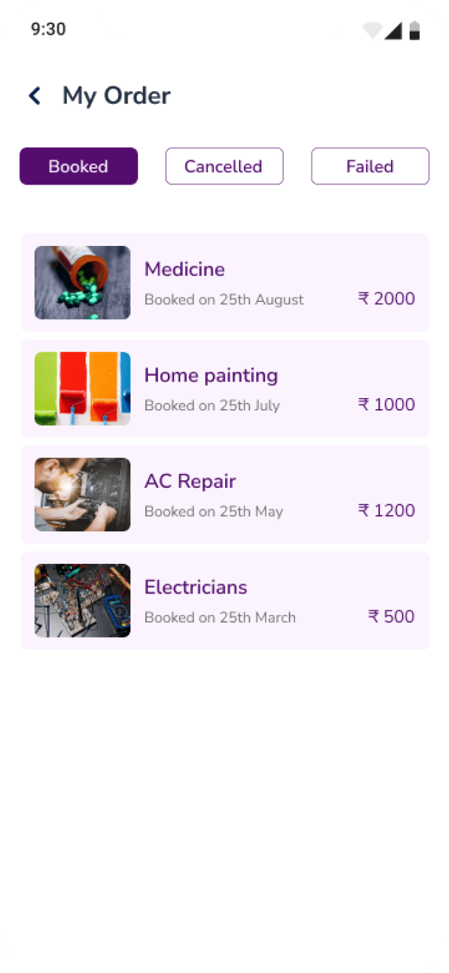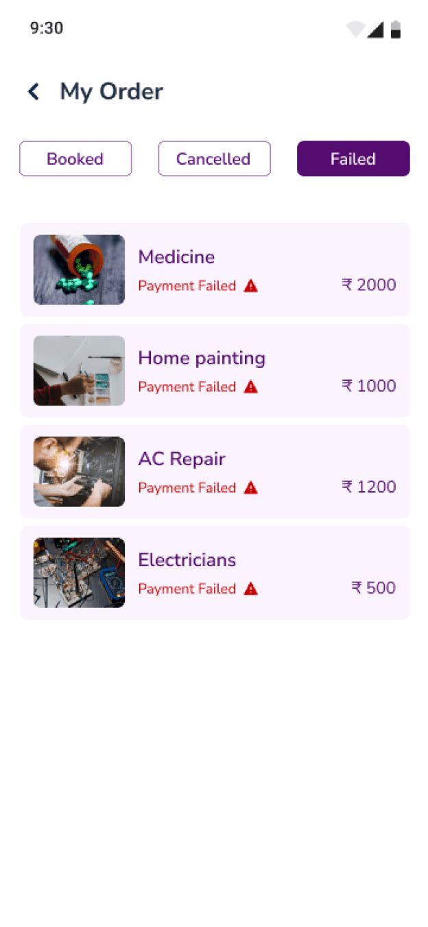 MY ORDER - BOOKED, CANCELLED & FAILED